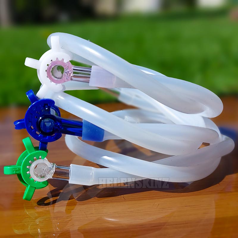 We make our own Bong Whips in house and sell them as a complete kit with all the glass attachments and fittings you might need. Our Whips are also a bit longer to make them much easier to use (50cm), you can always cut some off if you find it too long. We have tested our Whips extensively to work out a really decent length to start with, the difference a few inches makes is amazing. Our kits also include a Whip Retainer Clip so your whip won't keep pulling out of your Bong joint. The kit comes with a Glass Mouthpiece, 50cm of High Quality Semi-Clear Silicone Tubing, 1x 14mm Glass Elbow Adapter with Retainer Clip plus 1x 10mm & 1x 14mm colored Glass stopper for your Bong. Or you can buy the Clear Glass option that comes without the Stoppers but includes everything else.